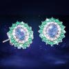 Luxury Diamond Inlaid Sea Blue Opal Earrings Female Ins Oval Elliptic Earrings French Premium
