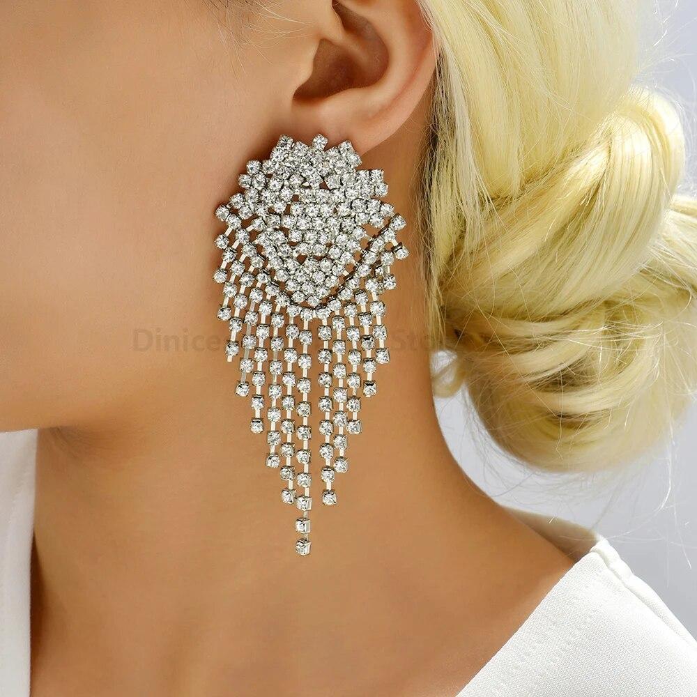 Creative Design Rhinestone Tassel Bride Wedding Party Jewelry Trend Luxury Quality Bridesmaids Unusual Dangle Earrings For Women