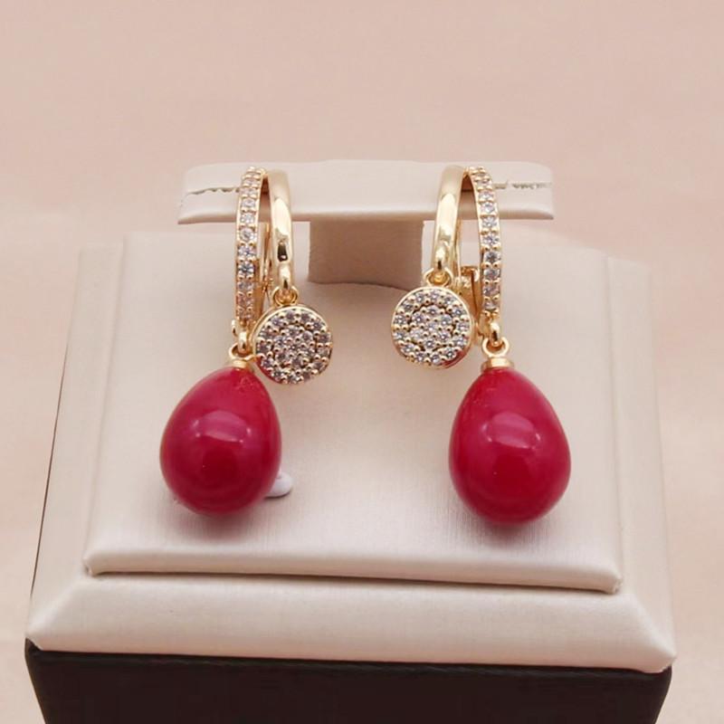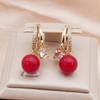 Trendy Red Imitation Pearls Drop Earrings for Women Fashion Zircon Hoop Earring Jewelry Party Accessories