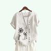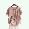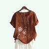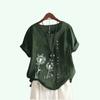 Women Fashion Floral Print Short Sleeve T-shirt Summer Casual Round Collar Cotton Linen Top Pullover Loose Blouses