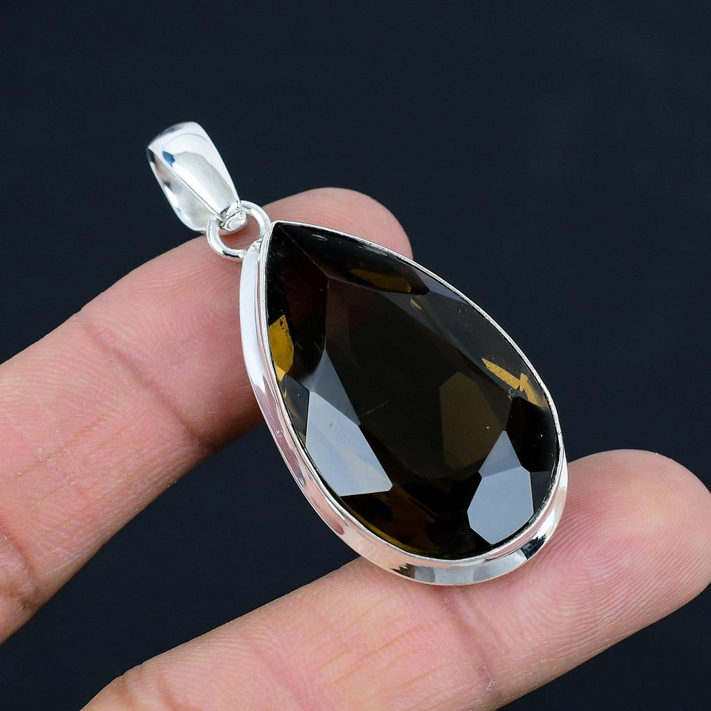 Natural Faceted Smoky Quartz Gemstone Pendant, 925 Sterling Silver, Pendant Jewelry, Handmade Silver Pendant Jewelry for Gift, Easter Gift
