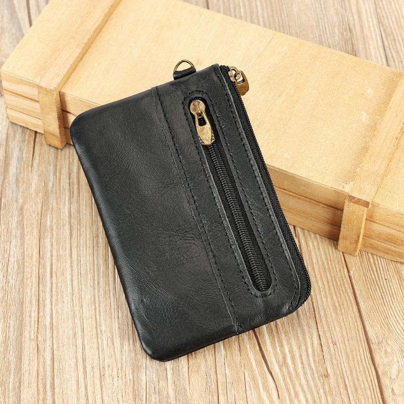 Men's and Women's Purse Coin Purse Leather Vintage Cowhide Zipper Card Cowhide Coin Bag Coin Wallet
