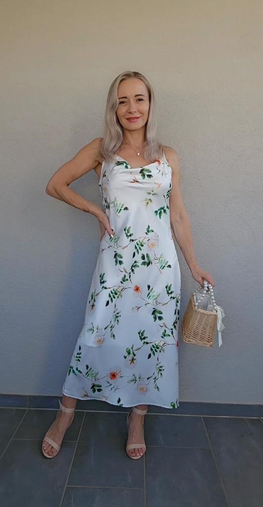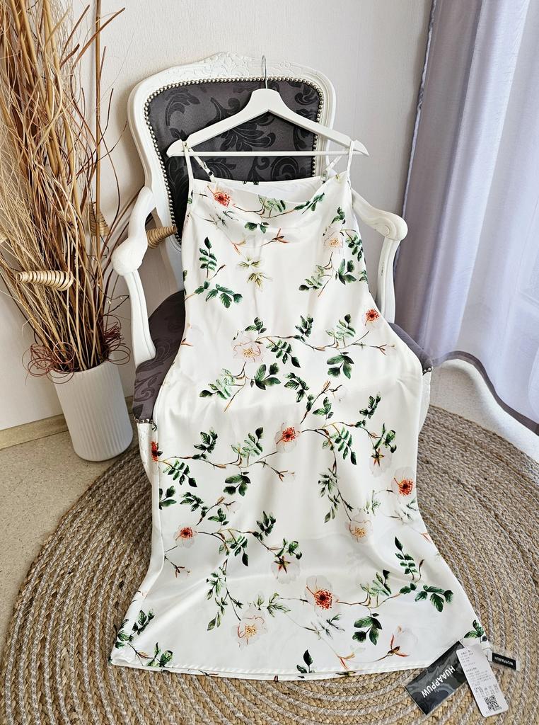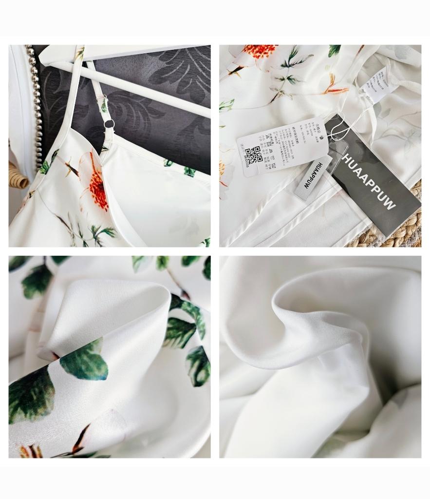 Summer Elegant V-neck Slimming Women's Spaghetti Strap Print Long Dress