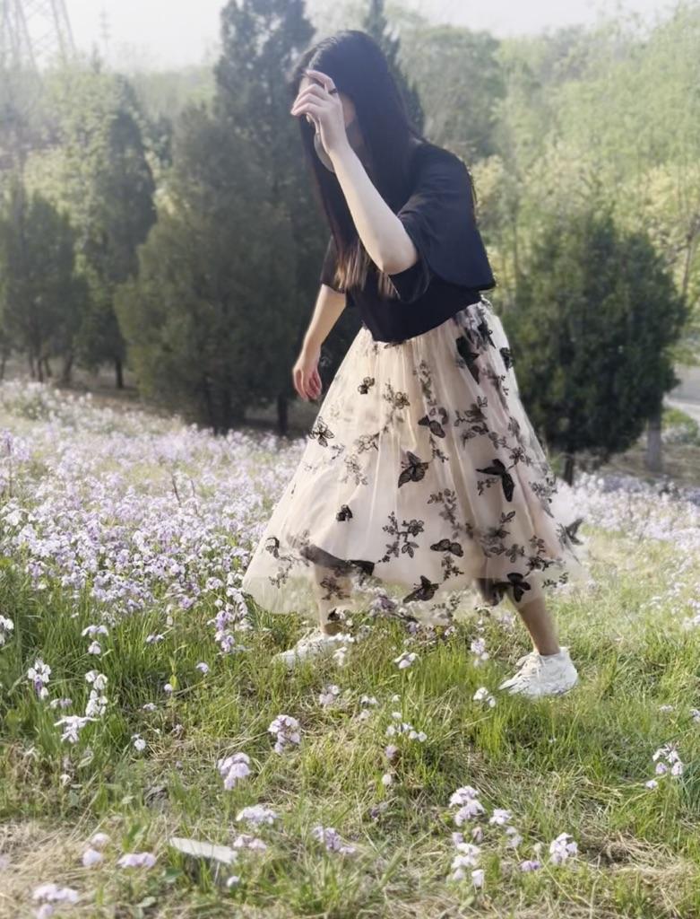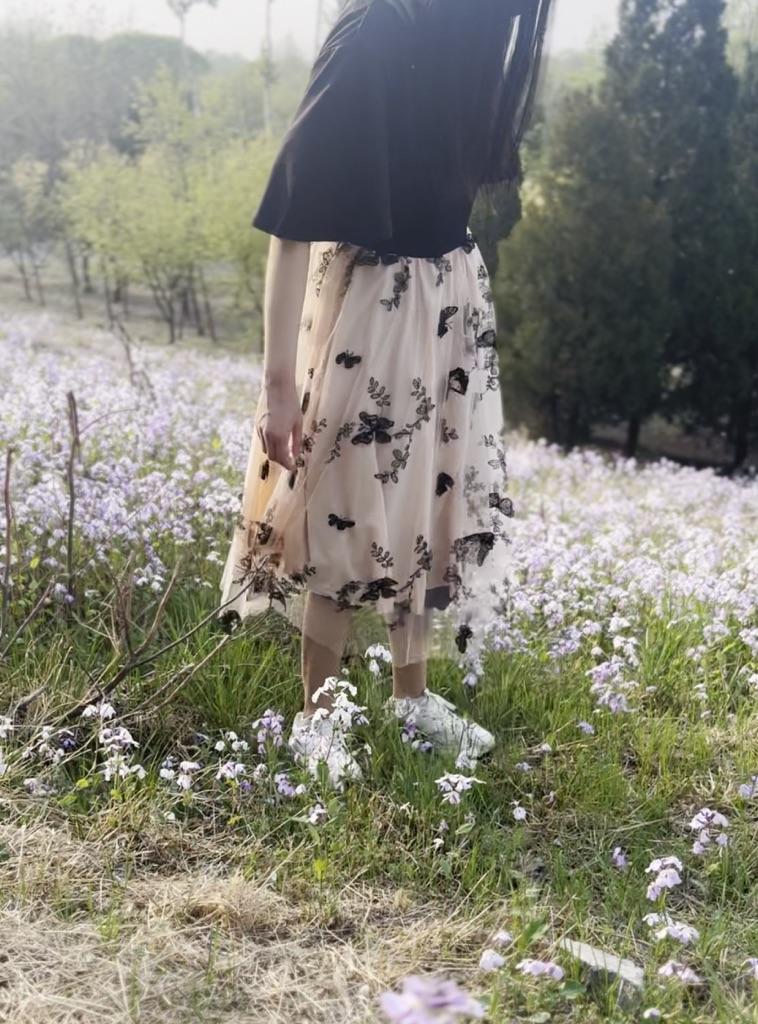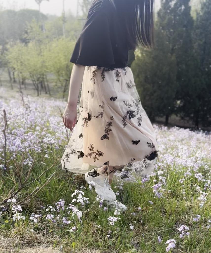 Women’s Midi Swing Dresses Short Sleeves V-neck Slim Fit A Line Dress Butterfly Floral Mesh Embroidered Skirts Spring Summer Casual Wear