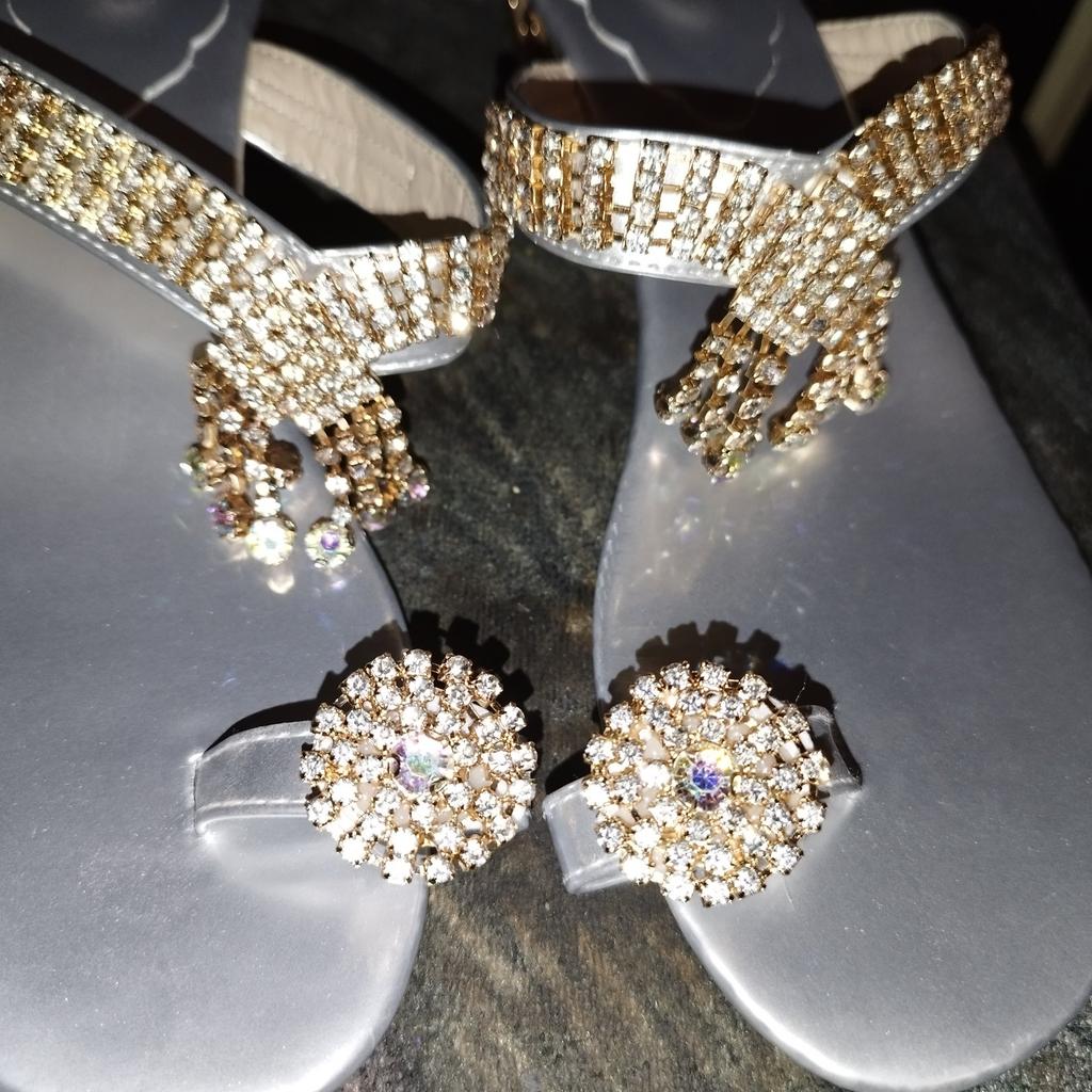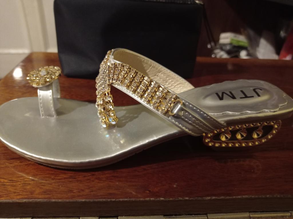 2024 Summer Sandals Women Shoes Rhinestone Flat Ladies Sandals Gold Silver Plus Size 41