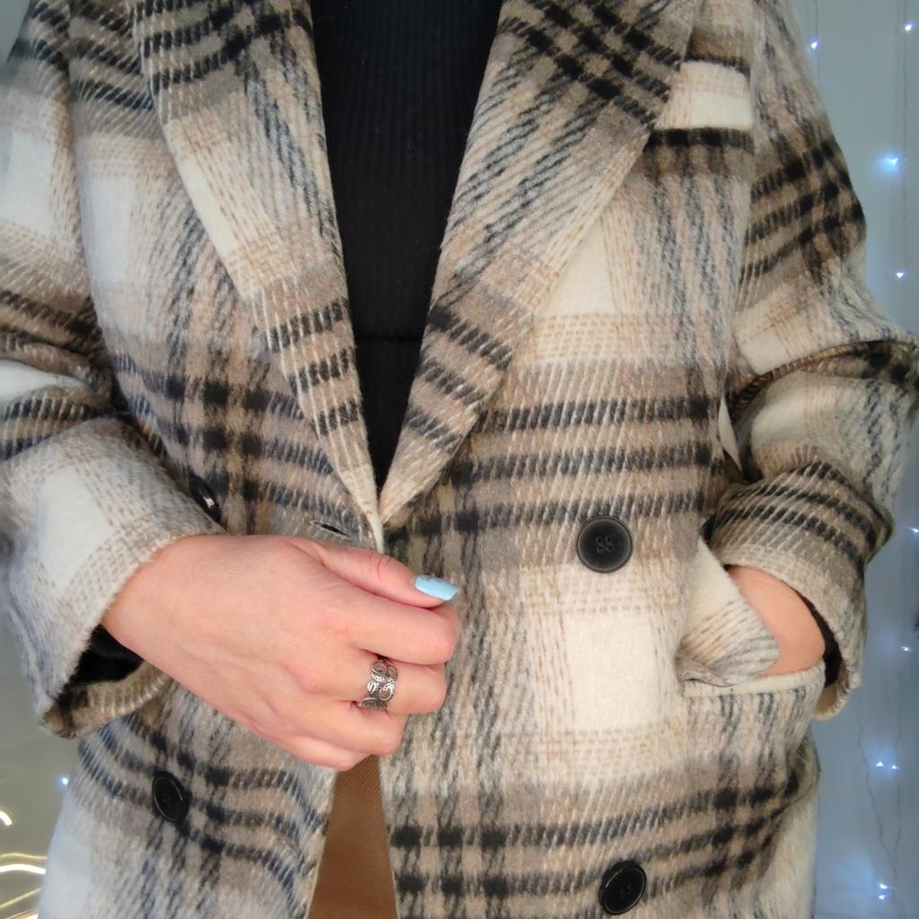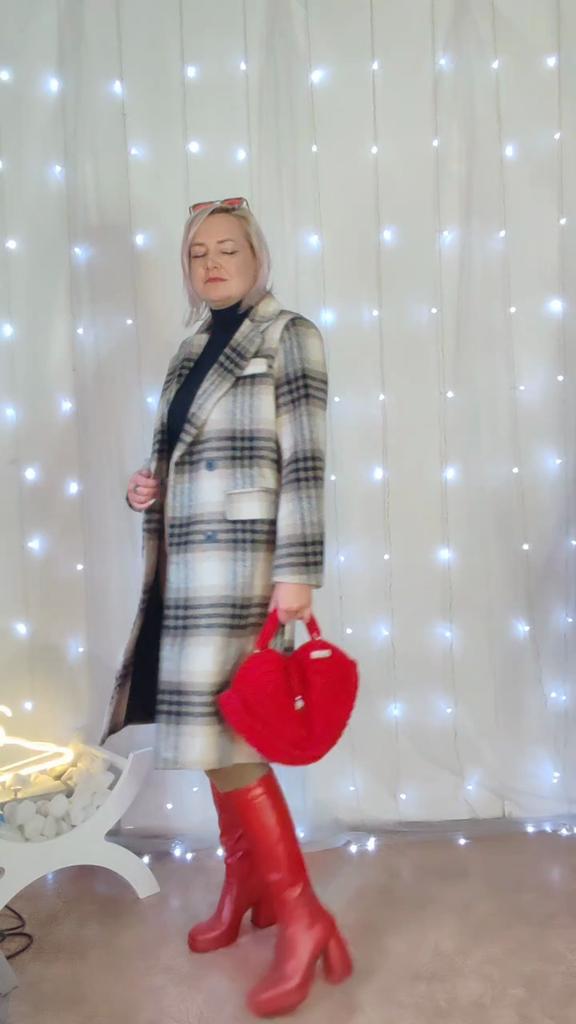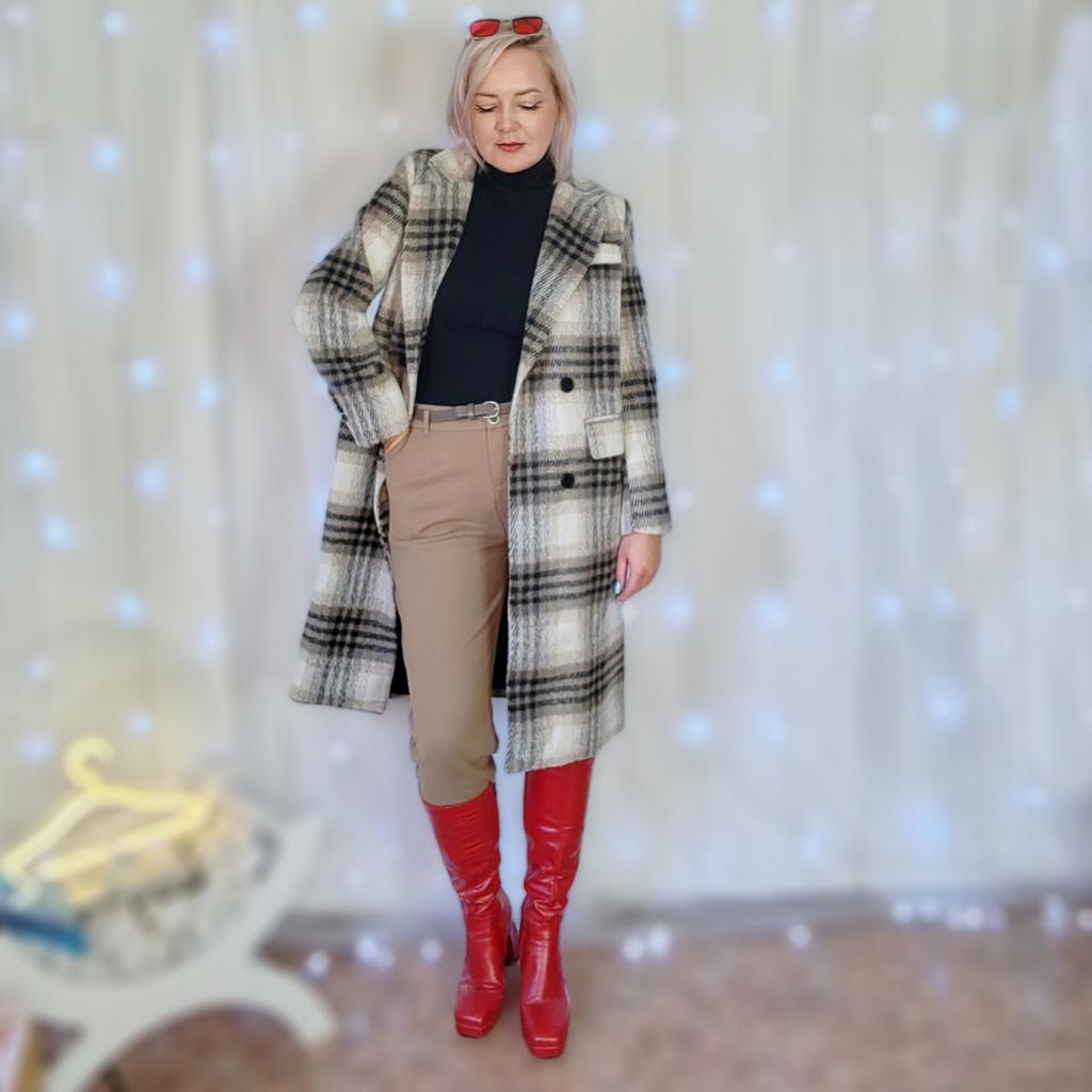 Fashionable Long Plaid Coat for Women, Knee-length Woolen Jacket