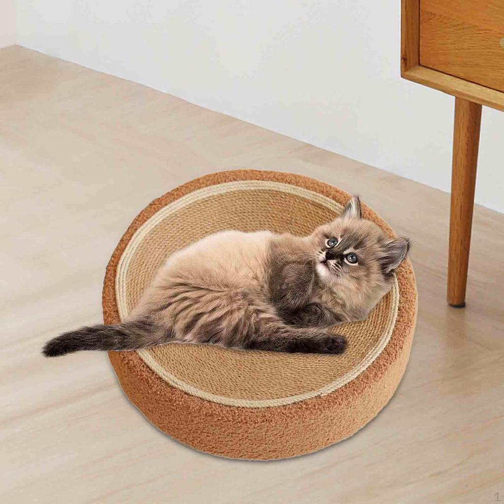 - 【Lounge Bed】:Cat Scratcher Lounge Bed Features a round shaped lounge bed that looks sleeping bed, that draws your pet's attention, cats can lie down on the pad couch; large space meets cat playing, making your kittens feel warm.
