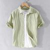 Summer Short Sleeve Shirt Men Daily Casual Tops Square Collar Soft and Comfortable Green Pure Cotton Shirt Korean Simple Style Men Clothing