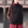 Johnature Women Vintage Vests Coats Stand Solid Color Button Plus Cotton Clothes Autumn Warm Chinese Style Vests