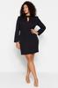 Women's Fashion Day and Night Balloon Sleeve Mini Black Double Breasted Collar Fitted Mini Knitted Dress