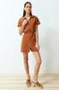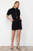 Women's Fashion Overalls Shirt Collar Short White Short Sleeve Belted Denim Overalls