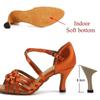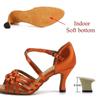 Summer Latin Dance Shoes Women'S Salsa Tango Ballroom Party Girls High Heels Colorful Bronze Satin Women'S Sandals