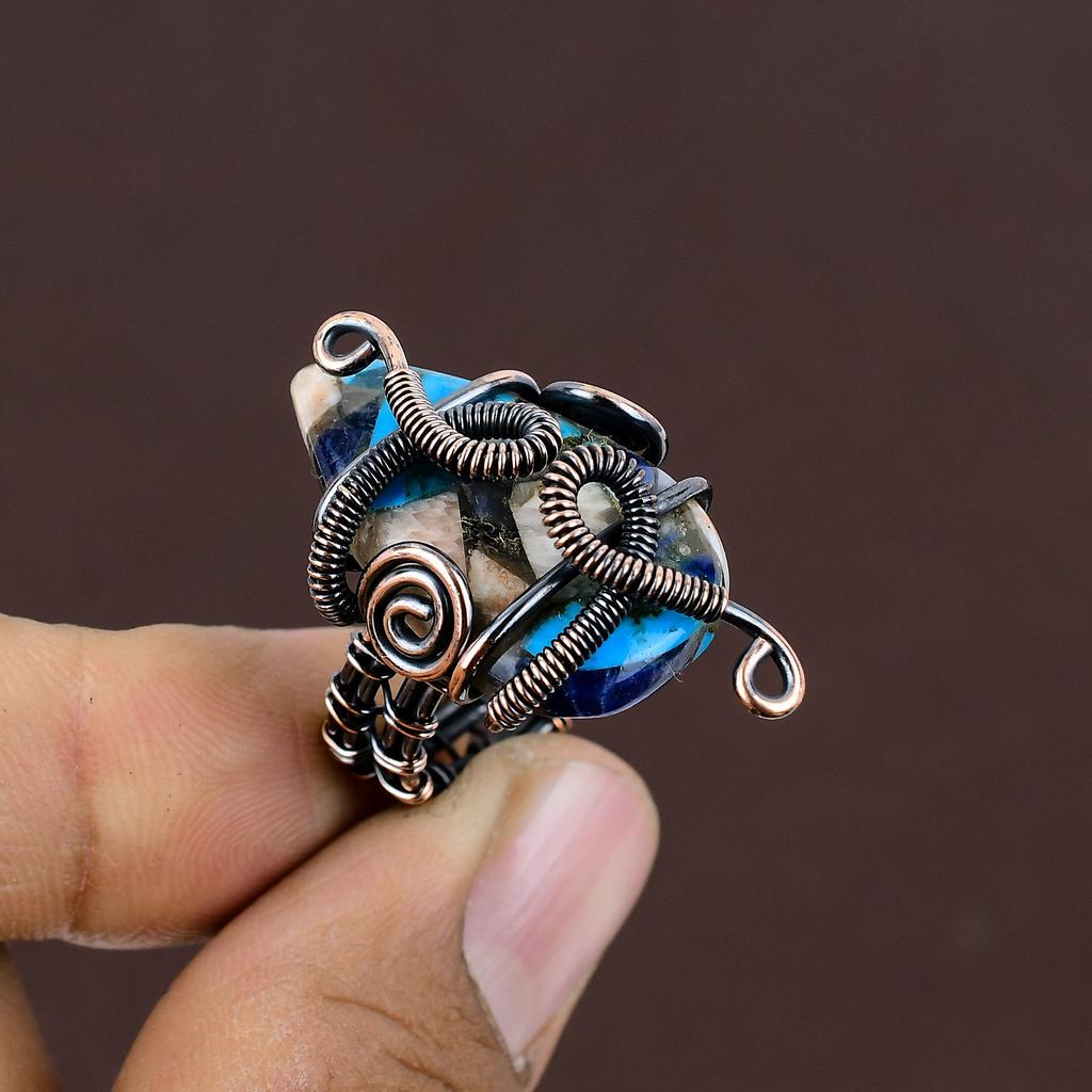 Natural Spiny Oyster Gemstone Handmade Copper Wire Wrap Gift Ring Size 7 Z6p01