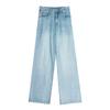 Light Blue Straight Jeans Women Summer Design Washed Joker Loose Wide-leg Mop Pants