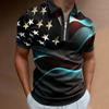 Men's Shirt Polo Casual Zip Short Sleeve Fashion Casual Zipper Summer Spring Regular Fit 3D Black Striped Stars Print Shirt