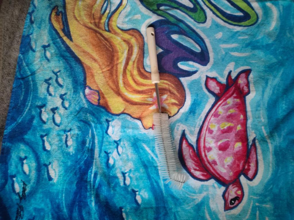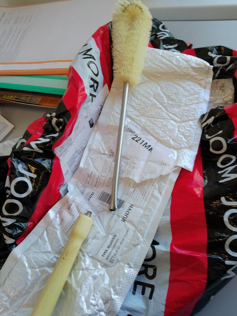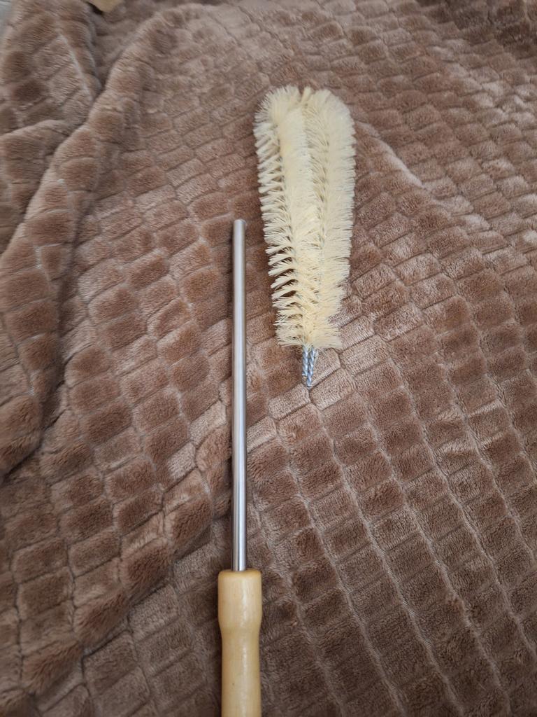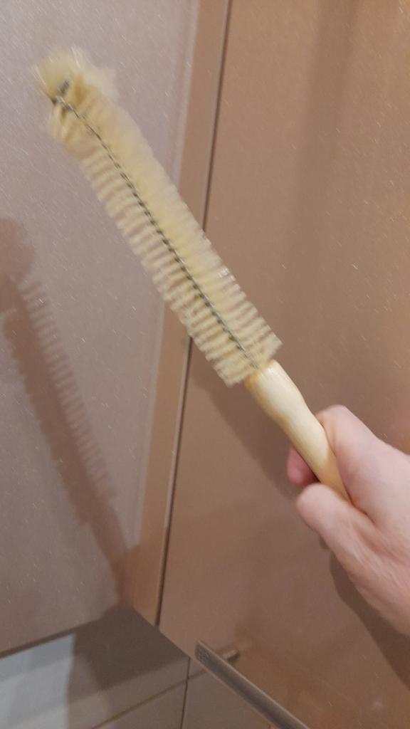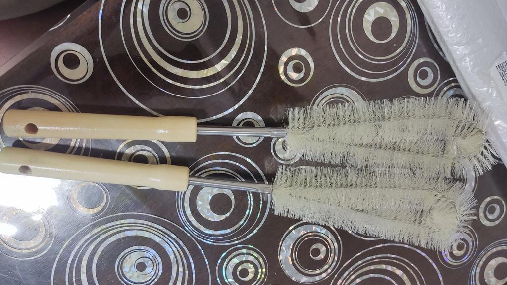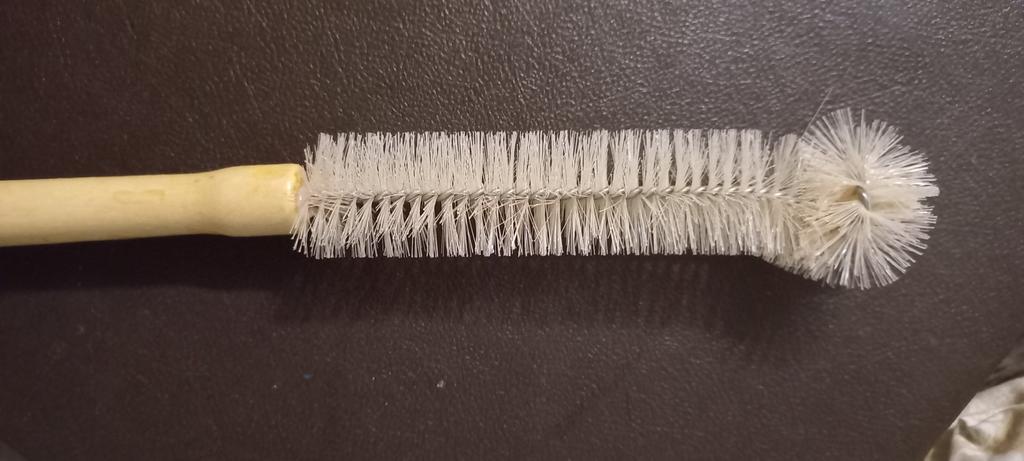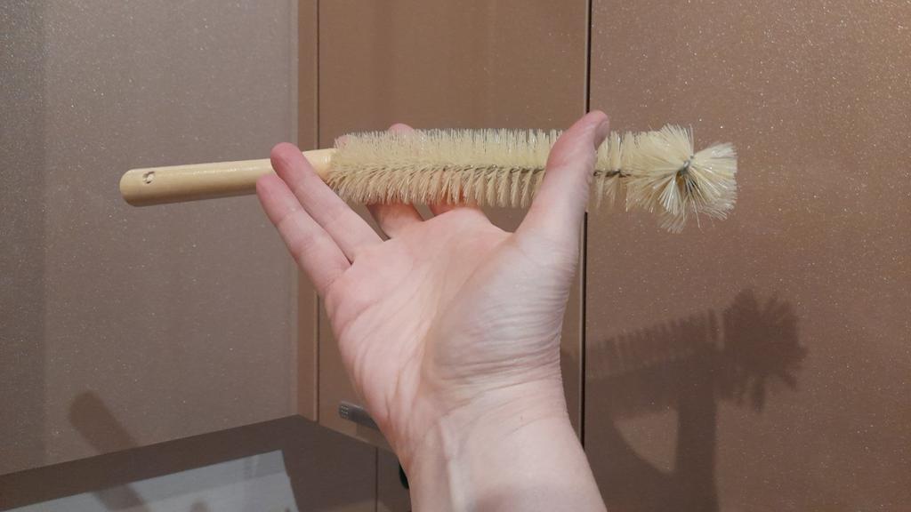 Liked the brush. Quite a long handle that doesn't bend, good bristles. Fits even into 6-liter water bottles