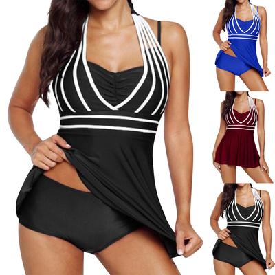 2Pcs/Set Women Tankini Set Sling Square Collar Flowy Hem Split Swimsuit Trunks Suit Quick Drying Beachwear