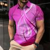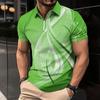 Men's Shirt Polo Casual Zip Short Sleeve Fashion Casual Zipper Summer Spring Regular Fit 3D Green Curve Print Shirt