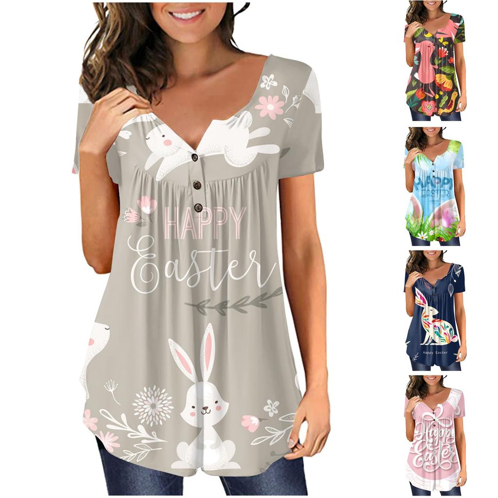 Fashion Women's EasterPrint Autumn And Winter Casual Round Neck Printed Short Sleeve Top