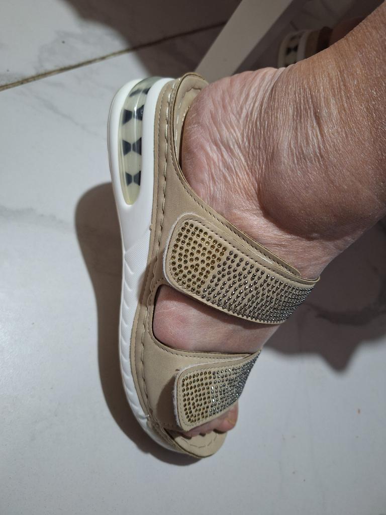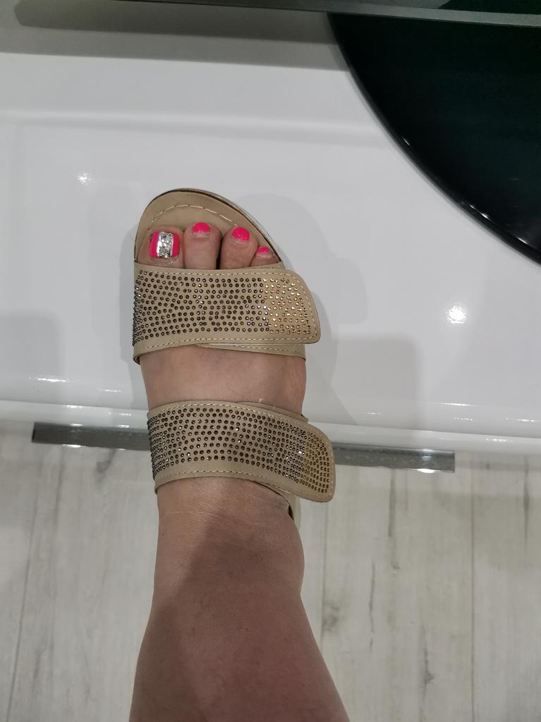 The flip flops are beautiful, just like in the ad, but the beauty inserts on the soles immediately fell off... I glued them on with Moment glue, so far it's holding up. In principle, they're beautiful, I wish they were in other colors... I want black ones.