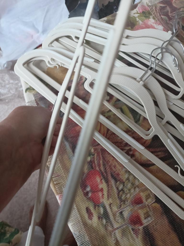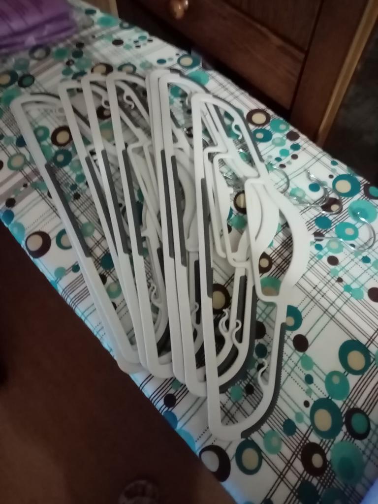 Excellent hangers!!! Everything as I wanted: the hook rotates, the hangers have ribs (the clothes won't slip off), in short, it has everything for everything. Excellent! Thank you!