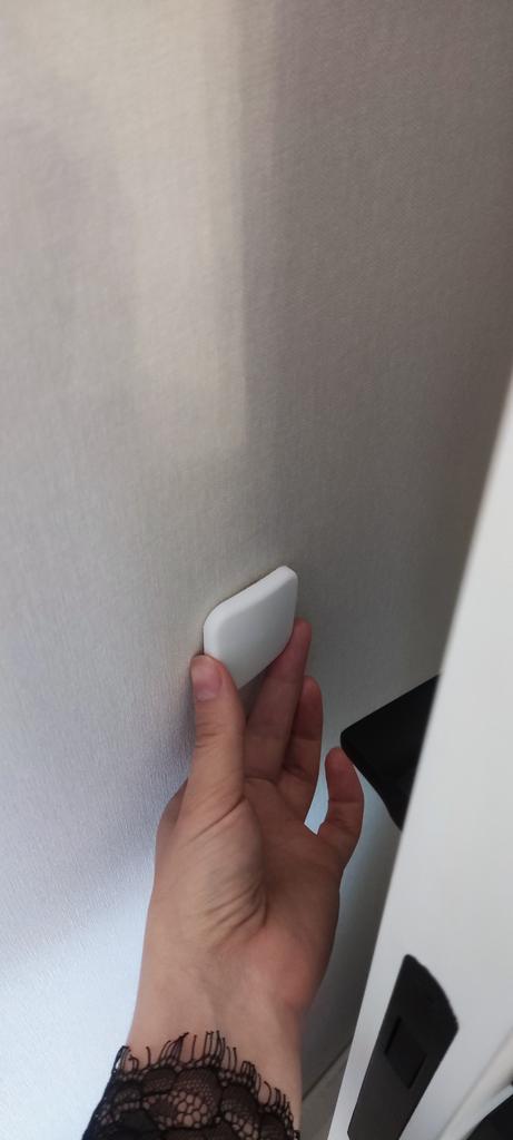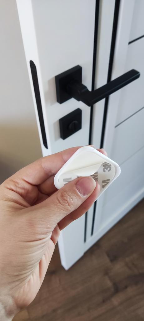 Door stop Made from durable hard silicone Various shapes to choose from I have a square 4.5 by 4.5 cm π The limiter is attached using the adhesive side. The adhesive layer is thick and should hold tightly I recommend