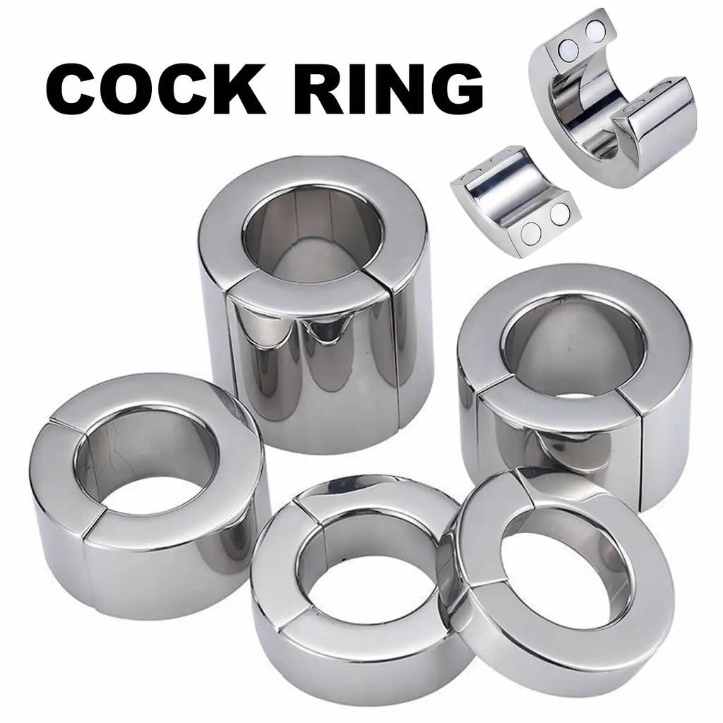 Penis Ring Magnetic Lock Metal Scrotum Pendant Ball Stretcher Testis Weight Cock Ring Penis Restraint Stainless Sex Toys for Men