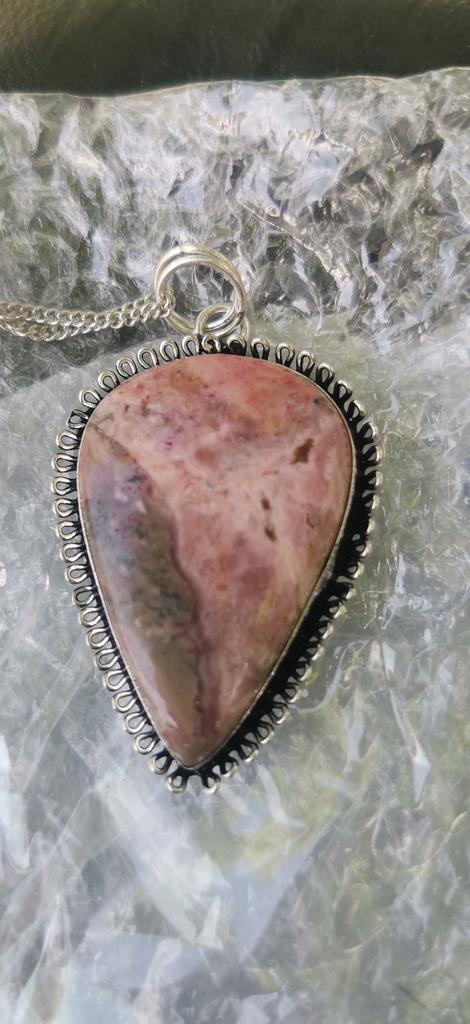 Natural Rhodochrosite Gemstone 925 Steling Silver Jewelry Pendant 2.09" Z8v49