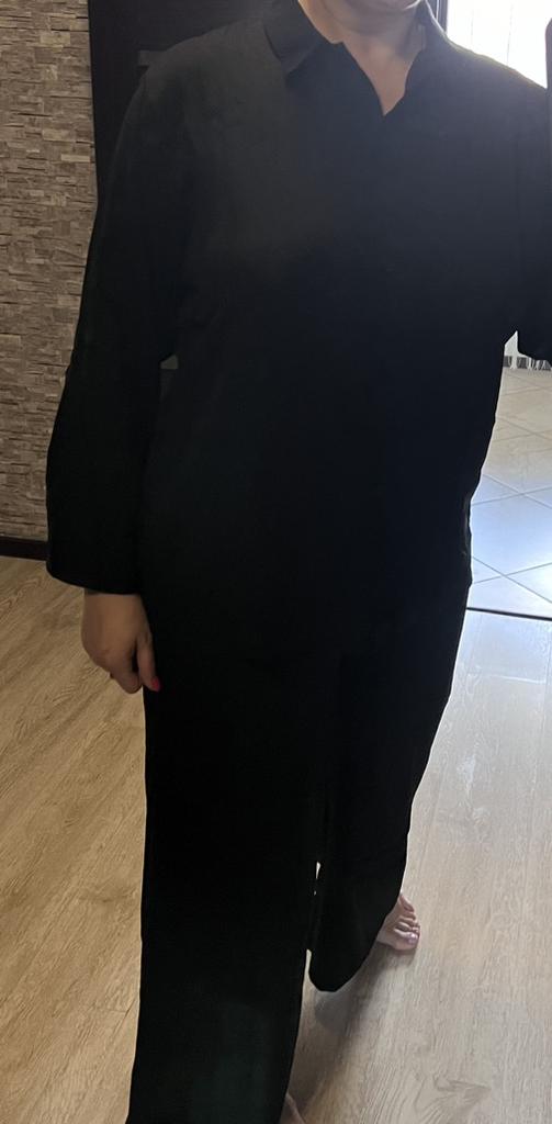 2Pcs/Set Autumn Women Solid Color Casual Outfit Lapel Long Sleeve Single-breasted Shirt Elastic Waist Pockets Straight Wide Leg Pants Set