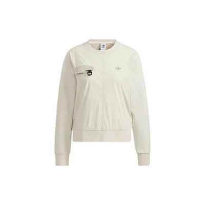 adidas Originals Adicolor Corduroy Mix Material Sweatshirt With Logo Print, Loose Round Neck Long Sleeve Women Tops Dark-Beige IM4316