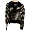 Women V-Neck Stripe Contrast Sweater Autumn Winter Soft Polo Neck Short Pullover Bat Sleeve Sweater