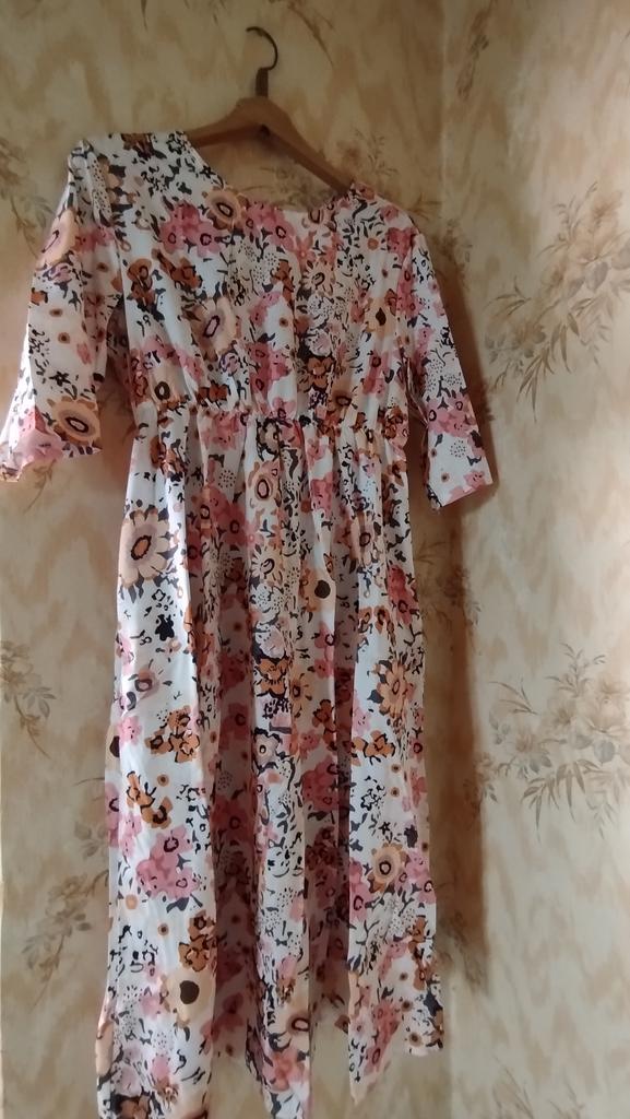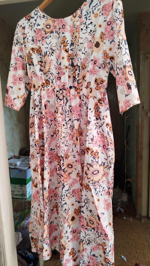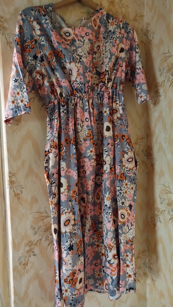 Women's Summer Casual Printed Mid Sleeve Round Neck Loose Pocket Dress