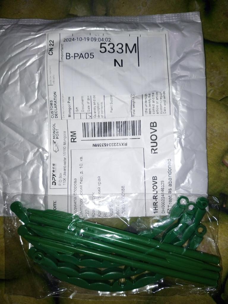 Everything arrived intact, it is convenient to form the width, from 3, 4, etc. half rings, the only minus is that I did not pay attention to the length of the legs, there is a size s, they are short and size L are long. So be careful when ordering. The parcel traveled to Ukraine for about a month.