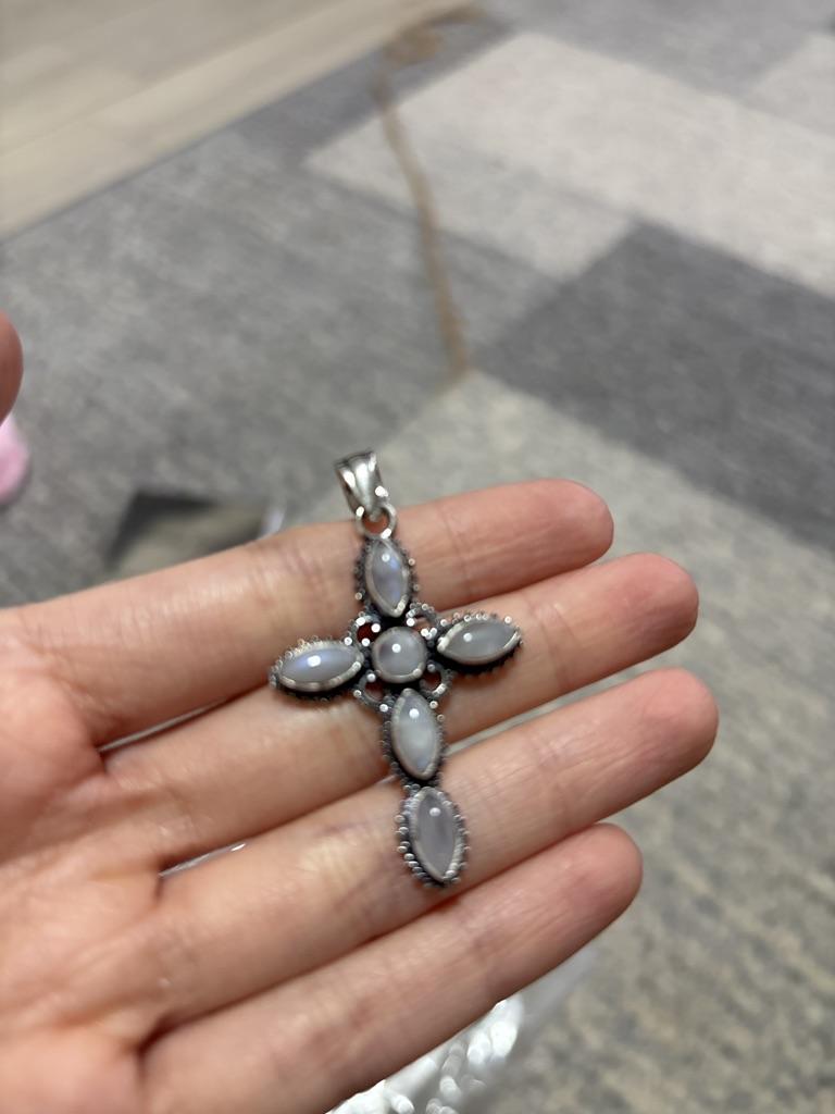 Natural Rainbow Moonstone Handmade 925 Sterling Silver Cross Pendant 1.81" Y8n30