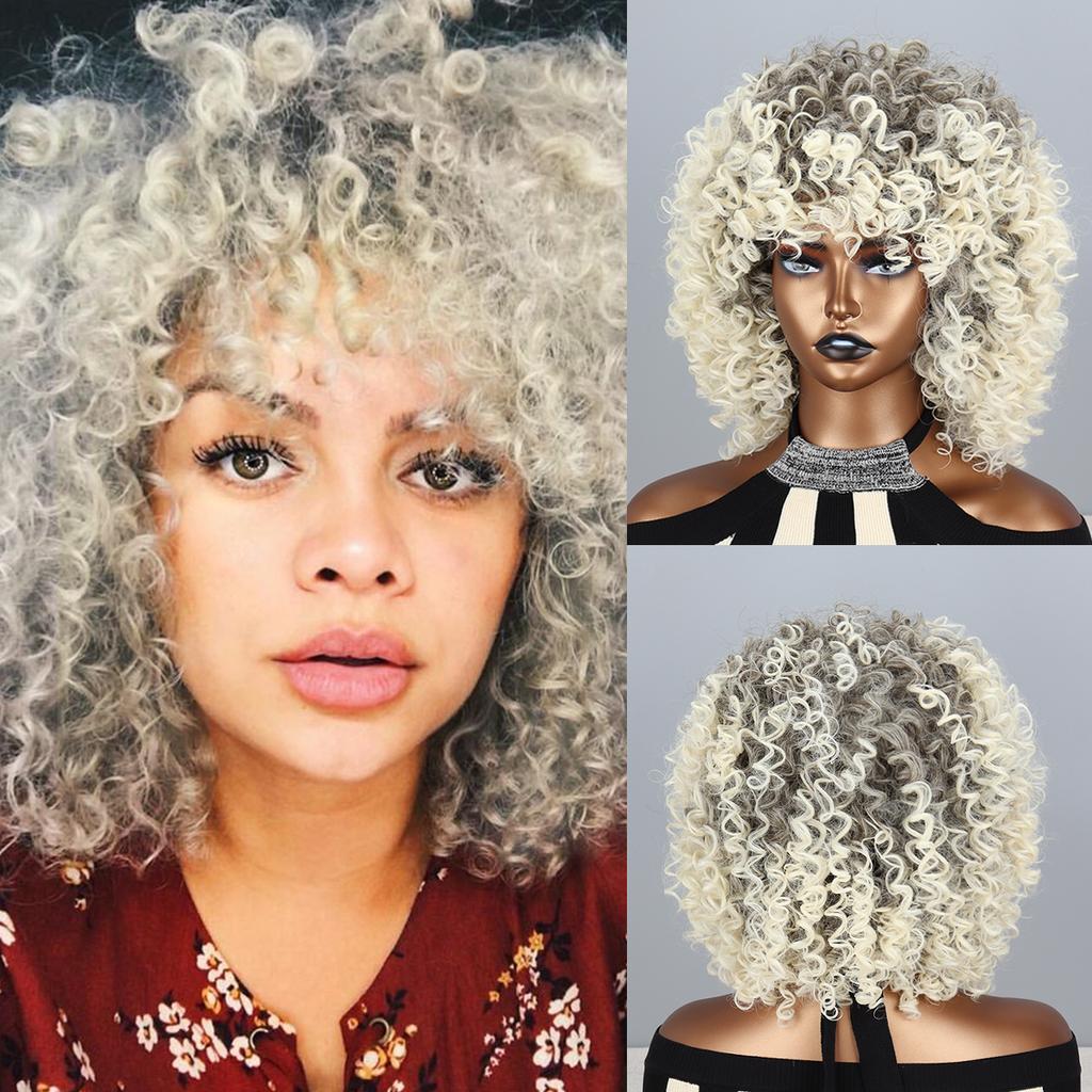 Curly Wigs for Women -Curly Wig with Bangs Natural Black Hair Synthetic Heat Resistant Full Wigs