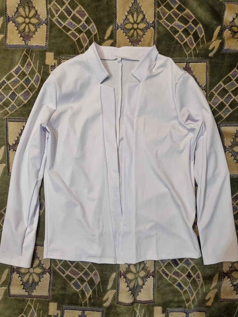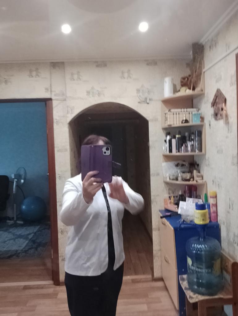 I wear size 48-50, height 164 cm. It fits well, loosely. Sleeve length, length of the jacket itself - everything is fine. Fabric - good synthetics. The cut is good, but you will need to add something bright for elegance. As a gift, as promised, they put earrings, they are so cute