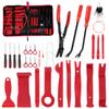 Package Includes: 11pcs auto trim removal tool, 3pcs clips removal tool, 6pcs stereo removal tool, 11pcs terminal pin remover, 1pc sticker scraper, 4pcs precision pick and hook set, 2pcs Ushaped removal tool, 2pcs pull wire tool, 2pcs round handle crowbar and 1pc storage bag.