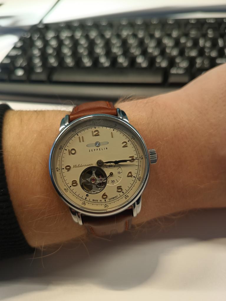 ZEPPELIN Mediterranee Leather Strap Open Heart Beige Dial Automatic Z96665 Men's Watch