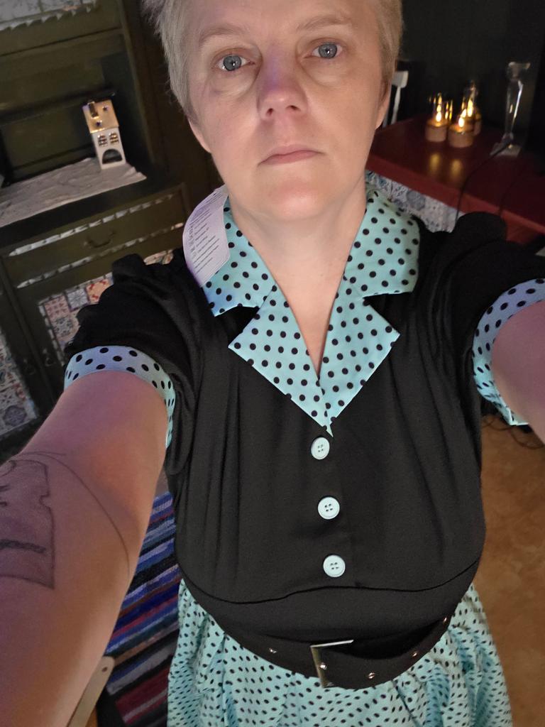The fabric is like I bought a cheap cosplay, but it's the polka dot elements (I don't know if it will be a minus for you, but it's not for me), it's perfect for the warm season because of the lightweight material. The dress itself is like the picture, perfect.