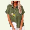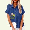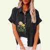 Fashion Lapel Collar Shirt for Women Summer&fall Floral Print Top with Pocket Loose Short Sleeve T-shirt Ladies Casual Linen Blouses