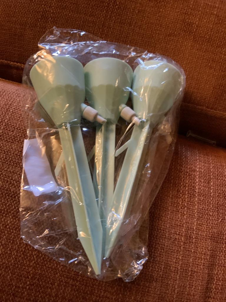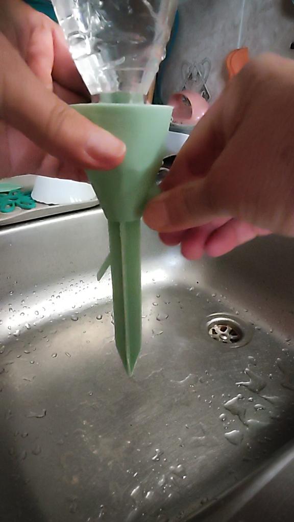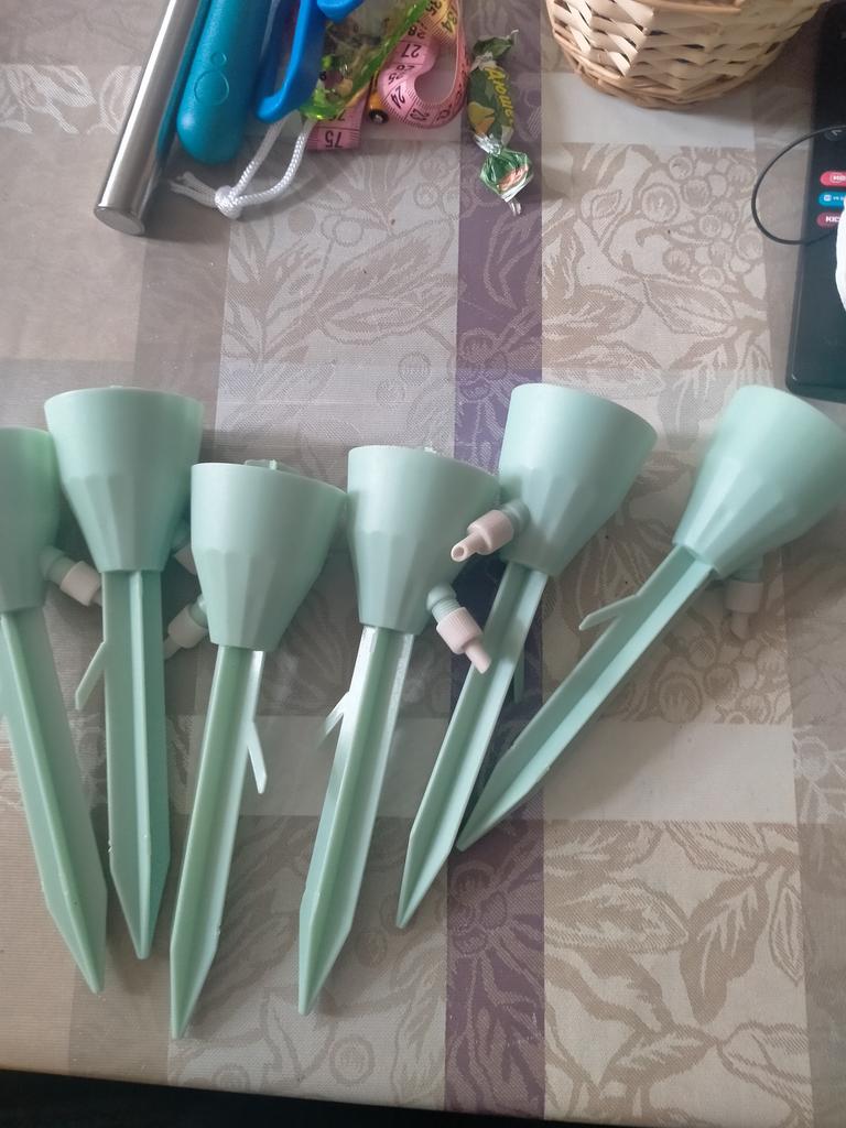 Cute water drippers. Ideal for tropical plants. A small lemonade bottle with a regular opening already fits on it.