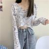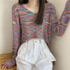 Sweater Rainbow Dye Striped Cropped Short Sweater Long Sleeve Knit V-Neck Loose Top Pullover Knit