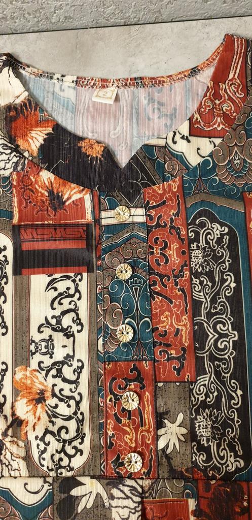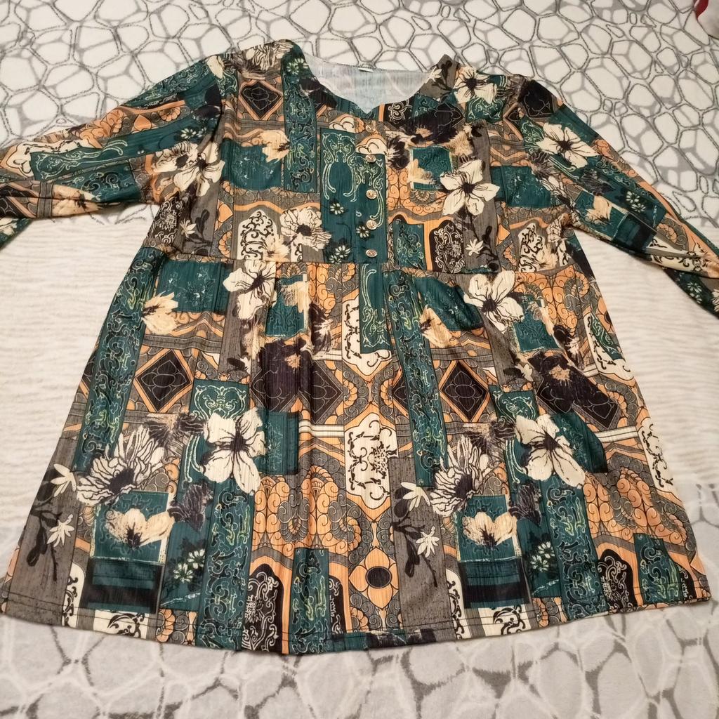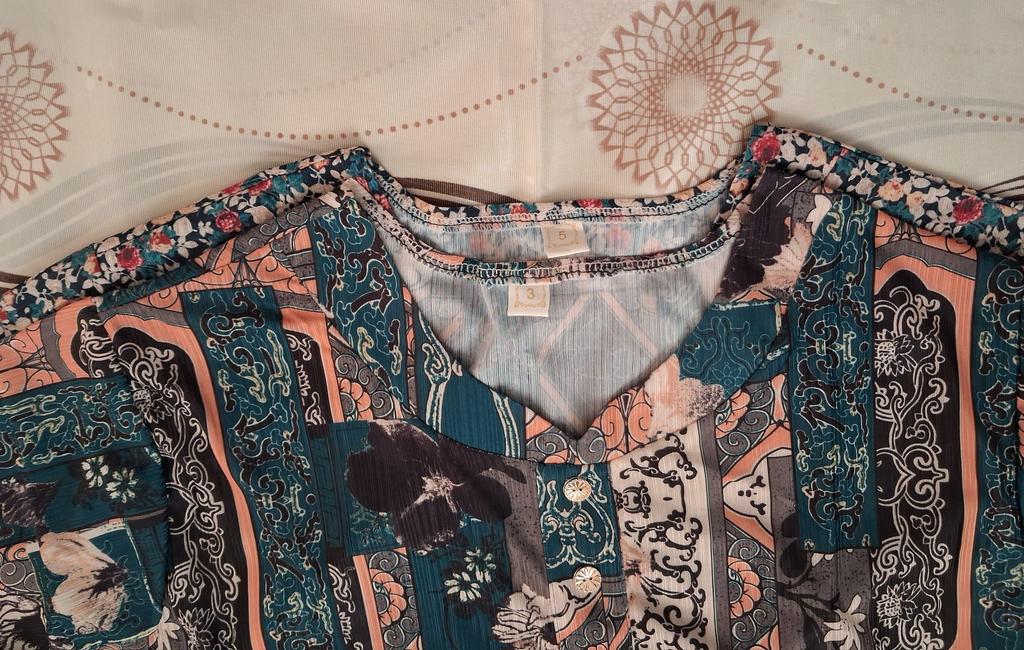 The blouse is beautiful, the fabric is pleasant.....only it runs catastrophically small for my size 54....2XL is not suitable at all, so I will order 5XL, so it's not tight.