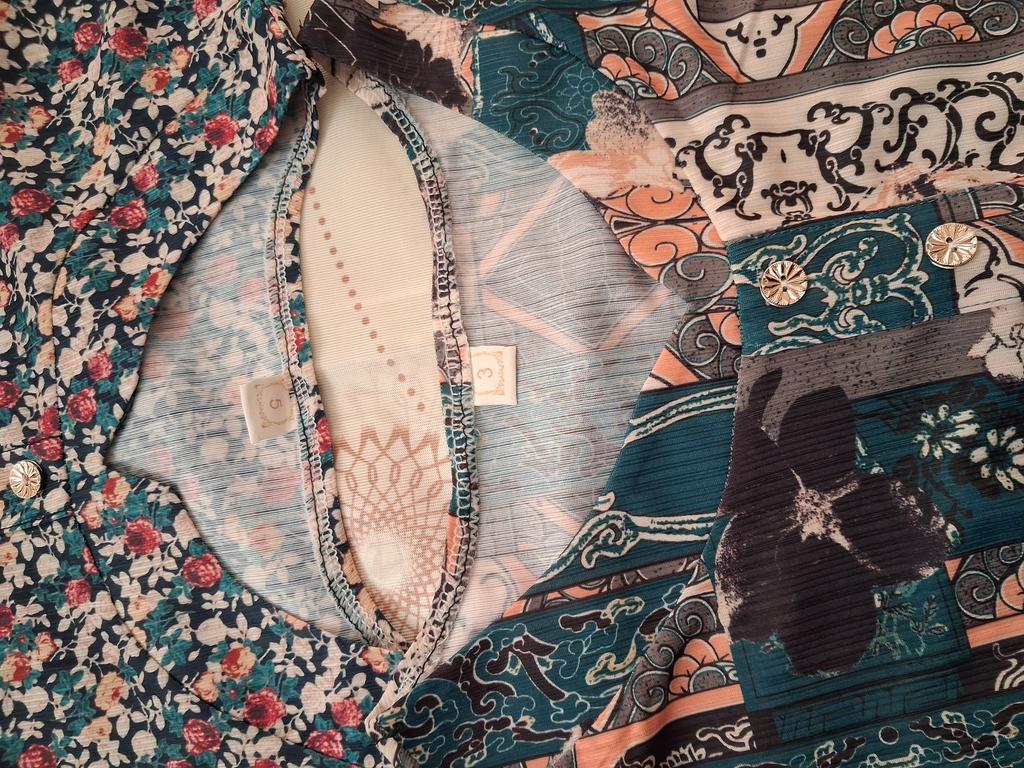 Delicate, flexible and nice fabric, but not breathable enough. Beautiful pattern. Beautiful colors.