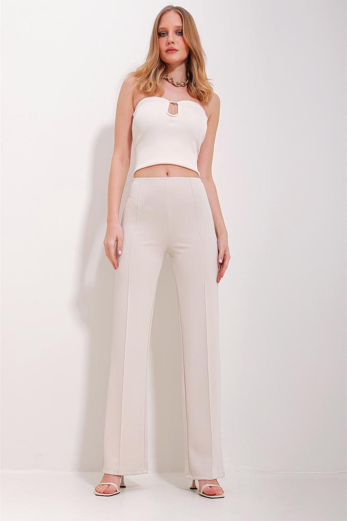 Women's Trousers New Season Fashion Cream Front Stitched Lycra Modal Palazzo Trousers