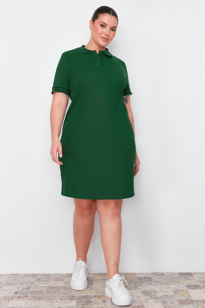 Women's Plus Size Dress New Season Fashion Green Polo Collar Mini Knitted Dress