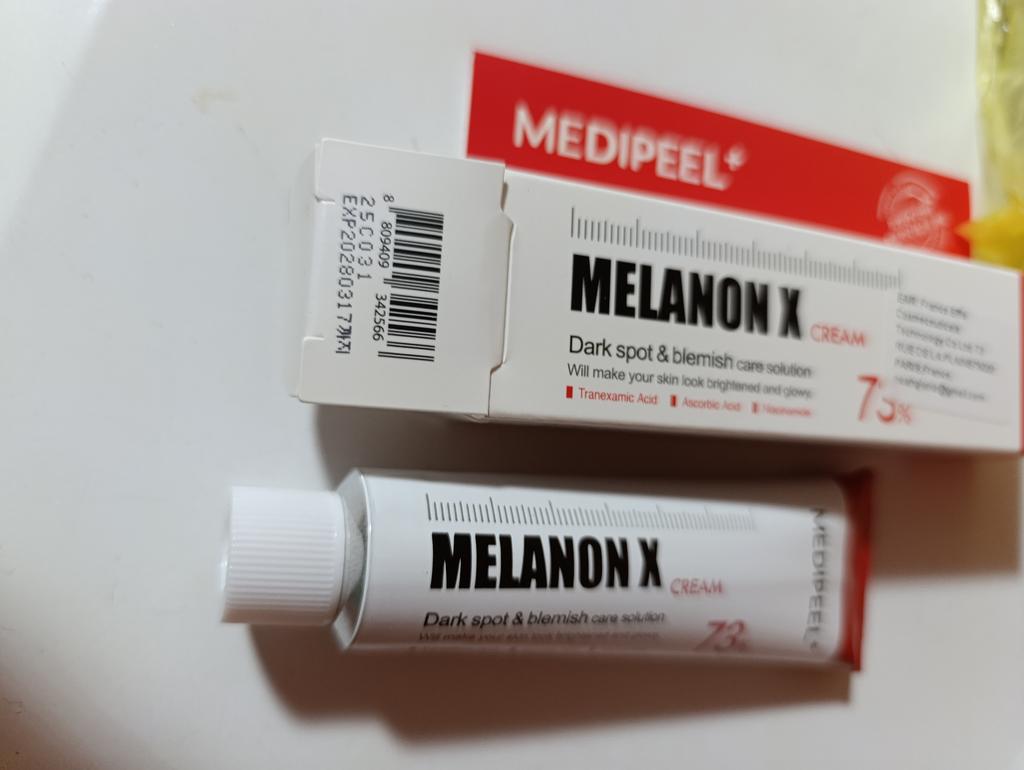 Medi-Peel Melanon X Cream is a treatment cream for dark spots, hyperpigmentation and discolouration on the skin. It contains multiple whitening agents including Niacinamide, Alpha-Arbutin, Vitamin C (Ascorbic Acid), Carnitine and Tranexamic Acid. These whitening agents inhibit the development of pigments in the skin and help to lighten the skin tone or localised pigmentation.