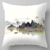 Wooden Chair Back Pillow, Tatami Bedside Pillow, Office Nap Pillow, Chinese Style Landscape Painting Pillowcase