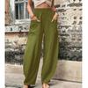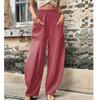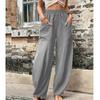 Casual Solid Color Elastic Waist Straight Pants With Pockets For Women Summer Fashion Loose Ladies Trousers Pantalon