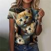 Kawaii Cat 3D Printed Women's T-shirt, Round Neck Short Sleeved Top, Summer Outdoor Casual Simple Clothing